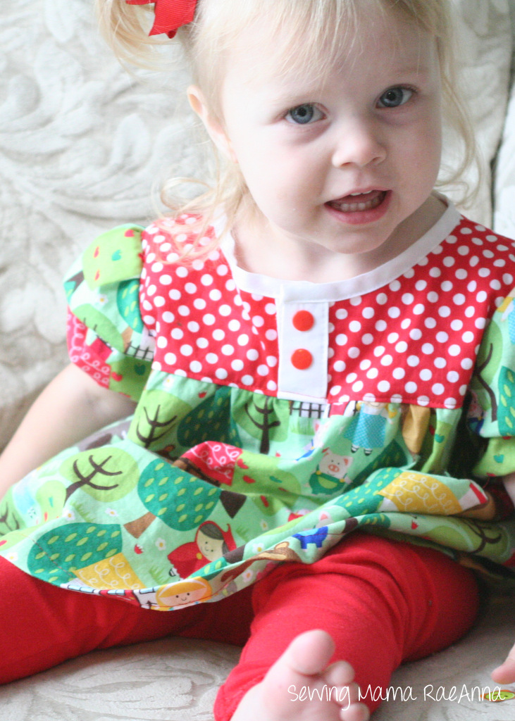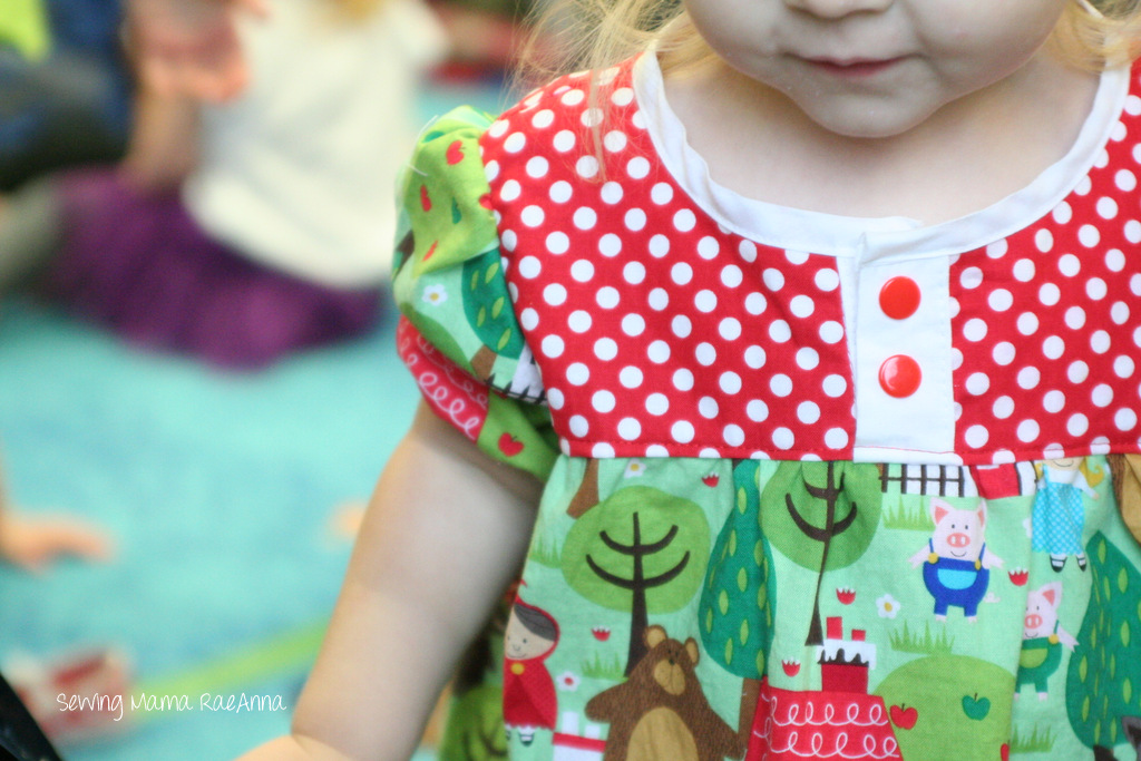 I keep being stunned by the fab fabric the pattern tour guests use! They all have such amazing taste! Today’s guest, RaeAnna, from Sewing Mama RaeAnna, is no exception. Check out the adorable combo of polka dot and fairy tale fabric! Swoon. I love it. See more over on her blog!