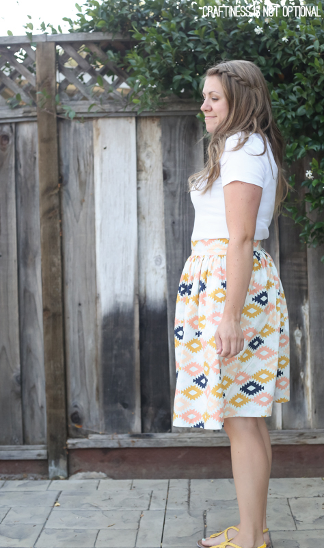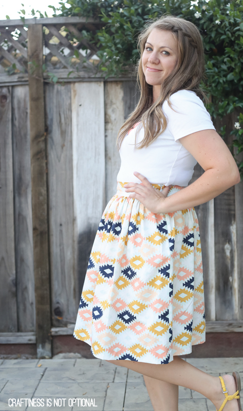 I had some gorgeous Arizona fabric sitting on my shelf so I made myself a (fairly quick) gathered skirt using this tutorial.