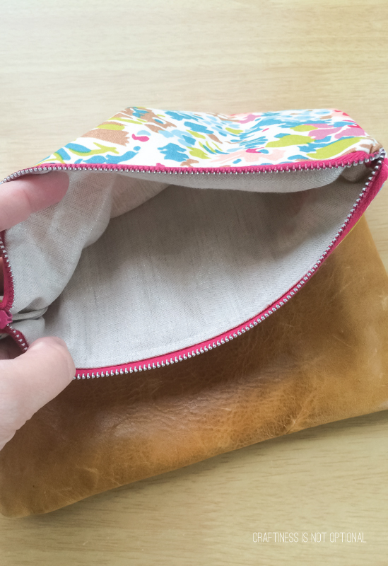 I used my girl Kristin’s fabulous foldover clutch tutorial again….with Cherie’s leather twist, again…..